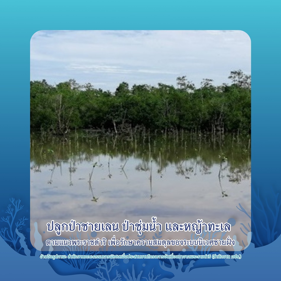 รวมถึงการปลูกป่าชุ่มน้ำ และหญ้าทะเล เพื่อเสริมสร้างแนวกันชนธรรมชาติ ป้องกันการกัดเซาะชายฝั่ง และส่งเสริมความหลากหลายทางชีวภาพให้คงอยู่ต่อไปอย่างยั่งยืนแนวทางตามพระราชดำริของพระองค์มิได้เพียงช่วยรักษาทรัพยากรธรรมชาติเท่านั้น