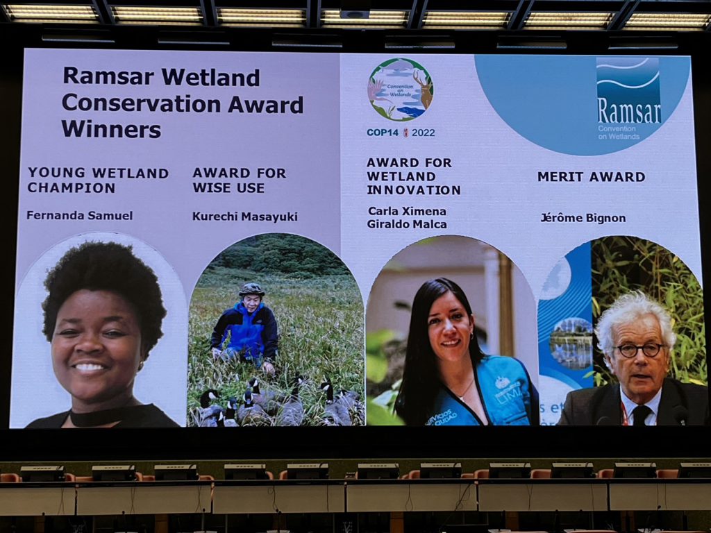 3. Wetland innovation คือ นาง Carla Ximena Giraldo Malca, honoring contributions to the sustainability of the Pantanos de Villa wetland สาธารณรัฐเปรู โดยการทำให้เสียงของเยาวชนเป็นที่ยอมรับในฐานะผู้ปกป้องพื้นที่ชุ่มน้ำ