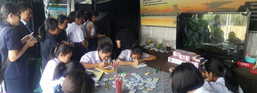 สำนักงานนโยบายและแผนทรัพยากรธรรมชาติและสิ่งแวดล้อม ได้เข้าร่วมจัดนิทรรศการ หัวข้อ “สผ. ร่วมสืบสานงานพระราชดำริฯ สร้างสมดุลและยั่งยืนสู่ทรัพยากรไทย” ในการประชุมวิชาการและนิทรรศการ“ทรัพยากรไทย ศักยภาพมากล้นมีให้เห็น” ระหว่างวันที่ 28 พฤศจิกายน – 4 ธันวาคม 2560 ณ ศูนย์เครือข่ายการเรียนรู้เพื่อภูมิภาค จุฬาลงกรณ์มหาวิทยาลัย จ.สระบุรี โดยได้จัดแสดงนิทรรศการ แบบจำลองแผนที่ประเทศไทยที่แสดงภาพประกอบเสียงบรรยาย นิยาม ความสำคัญและบริการจากระบบนิเวศที่เชื่อมโยงกับการดำรงชีวิตและการใช้ประโยชน์ รวมถึงชนิดพันธุ์ที่ถูกคุกคาม และสิ่งมีชีวิตที่ได้รับพระราชทานนามในแต่ละระบบนิเวศ การแสดงภาพเสมือนสามมิติของพืชและสัตว์ในพระนาม จำนวน 28 ชนิด เช่น ทิวลิปคิงภูมิพล กล้วยไม้ควีนสิริกิติ์ ม่วงเทพรัตน์ ปูเจ้าพ่อหลวง ปูราชินี สิรินธรผีเสื้อกลางคืน และต้นไม้ประจำพระองค์ สมเด็จพระเจ้าอยู่หัวมหาวชิราลงกรณ บดินทรเทพยวรางกูร “ต้นรวงผึ้ง” และจัดแสดงวิดีทัศน์ เรื่อง “ความหลากหลายทางชีวภาพคือชีวิต” นอกจากนี้ ยังมีกิจกรรมการจัดทำเข็มกลัดสิ่งมีชีวิตในพระนามอีกด้วย