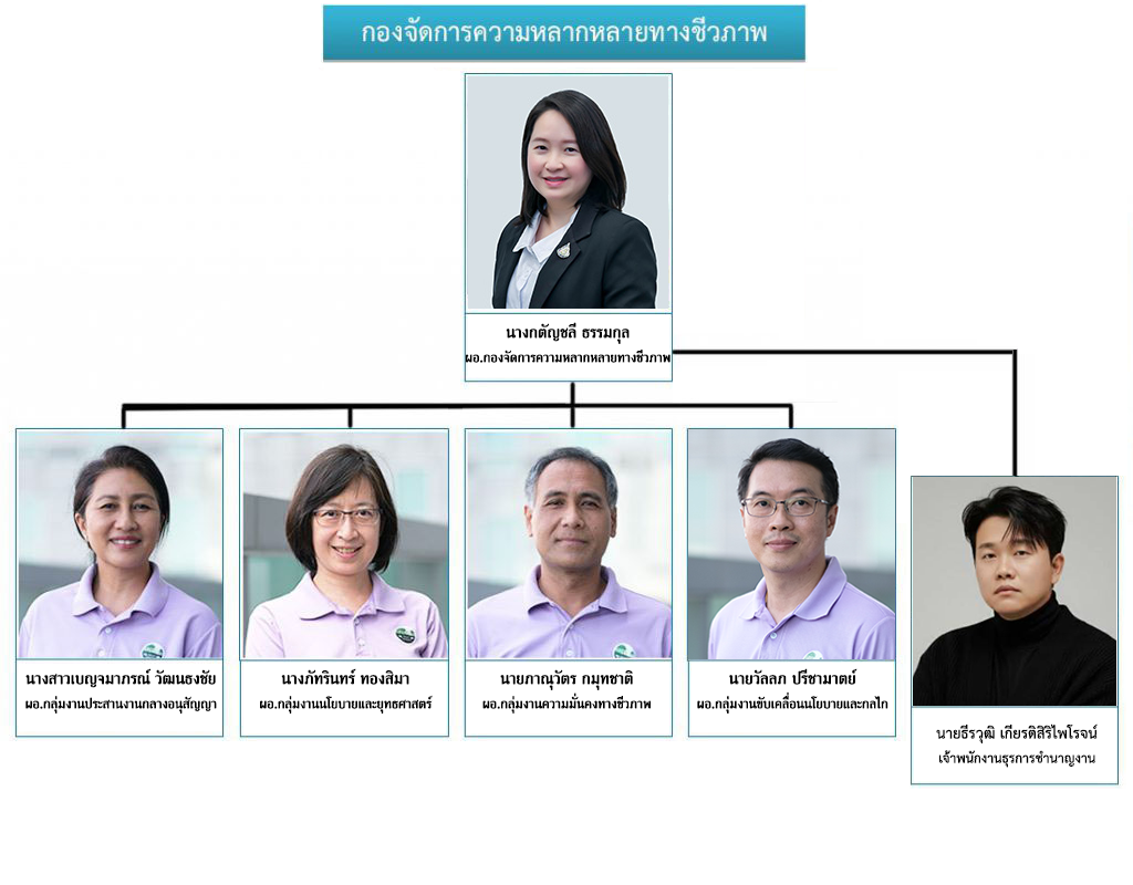 2) ประสานและสนับสนุนการดำเนินการตามนโยบายและกฎหมายที่เกี่ยวข้องในเรื่องความหลากหลายทางชีวภาพและความปลอดภัยทางชีวภาพ